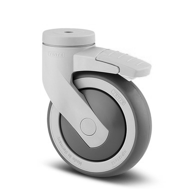 Castors. We offer plastic and metal wheels with a choice of diameter. For wheels with a diameter of 50mm, there is an option to order a concealed variant. Additional options that enhance the mobility of the bed include individual wheel locking (standard), axial locking, and central locking.