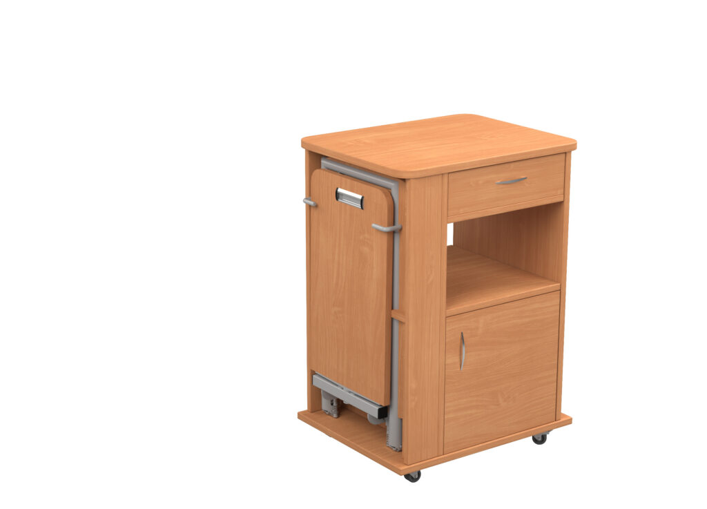 Virgo lux is an upgraded version of our standard bedside cabinet – aside form main features of Virgo this model is equipped with height-adjustable and tilting table. Efficient system of putting up and down makes it easy and comfortable while easting or reading. This model combines both bedside cabinet and overbed table, which makes it very functional.