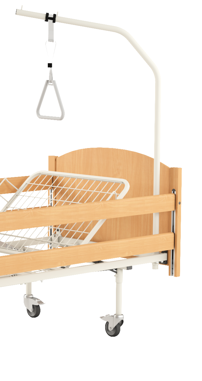 Uchwyty na wyposażenie dodatkowe Łóżka z serii Aries standardowo wyposażone są w specjalne gniazda, zlokalizowane po prawej i lewej stronie łóżka, od strony głowy. Umożliwiają one łatwy montaż wyposażenia dodatkowego, np. wysięgnika lub stojaka na kroplówkę. |