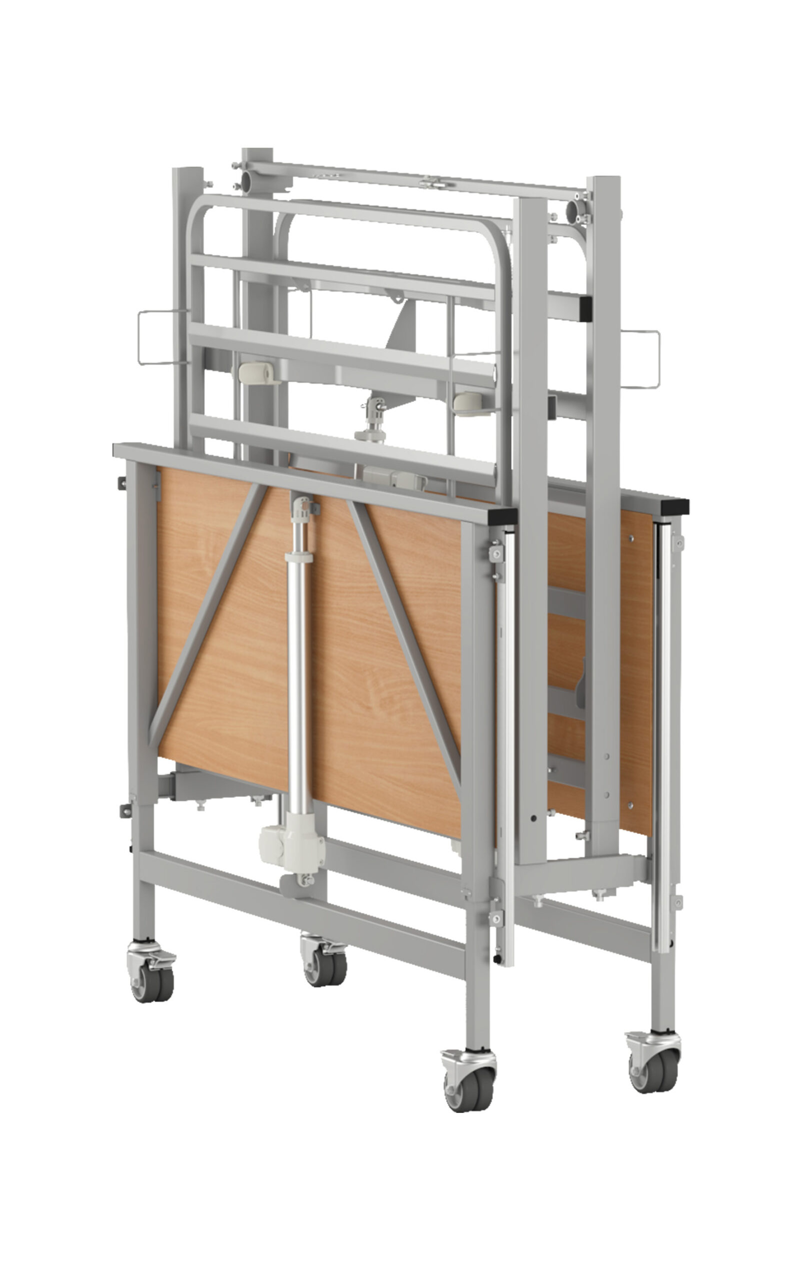 Obniżona pozycja poręczy bocznych - to istotny element konstrukcyjny łóżka rehabilitacyjnego. Dzięki możliwości całkowitego opuszczenia poręczy pacjent zyskuje swobodę ruchu podczas wstawania i siadania, a elementy zabezpieczające nie stanowią dla niego przeszkody. Takie rozwiązanie podnosi ergonomię użytkowania oraz zwiększa bezpieczeństwo w codziennej opiece.