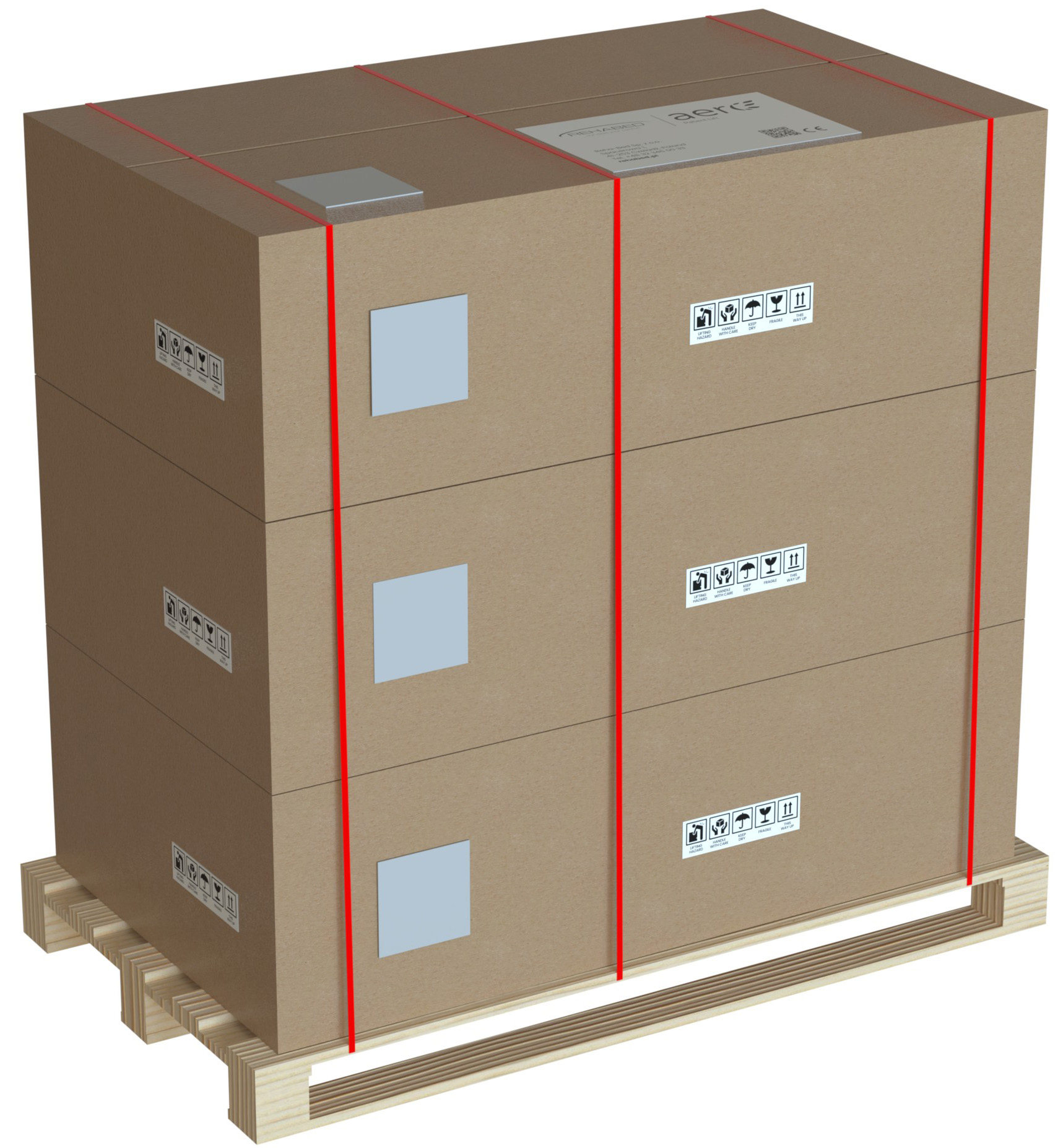 | SPOSÓB PAKOWANIA Podnośnik pacjenta jest pakowany indywidualnie w karton transportowy. Kartony są układane po trzy sztuki w pionie i zabezpieczane na palecie transportowej o wymiarach 140x80cm |